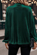 Evergreen Asymmetric Button Keyhole Neck Long Sleeve Velvet Blouse