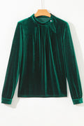 Black Frilled Collared Smocked Cuffs Puff Sleeve Velvet Blouse