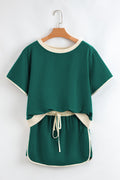 Evergreen Colorblock Edge Drop Shoulder T Shirt and Skort 2Pcs Set
