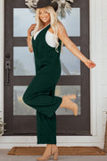 Sale Evergreen Corduroy V Neck Patched Pocket Sleeveless Jumpsuit