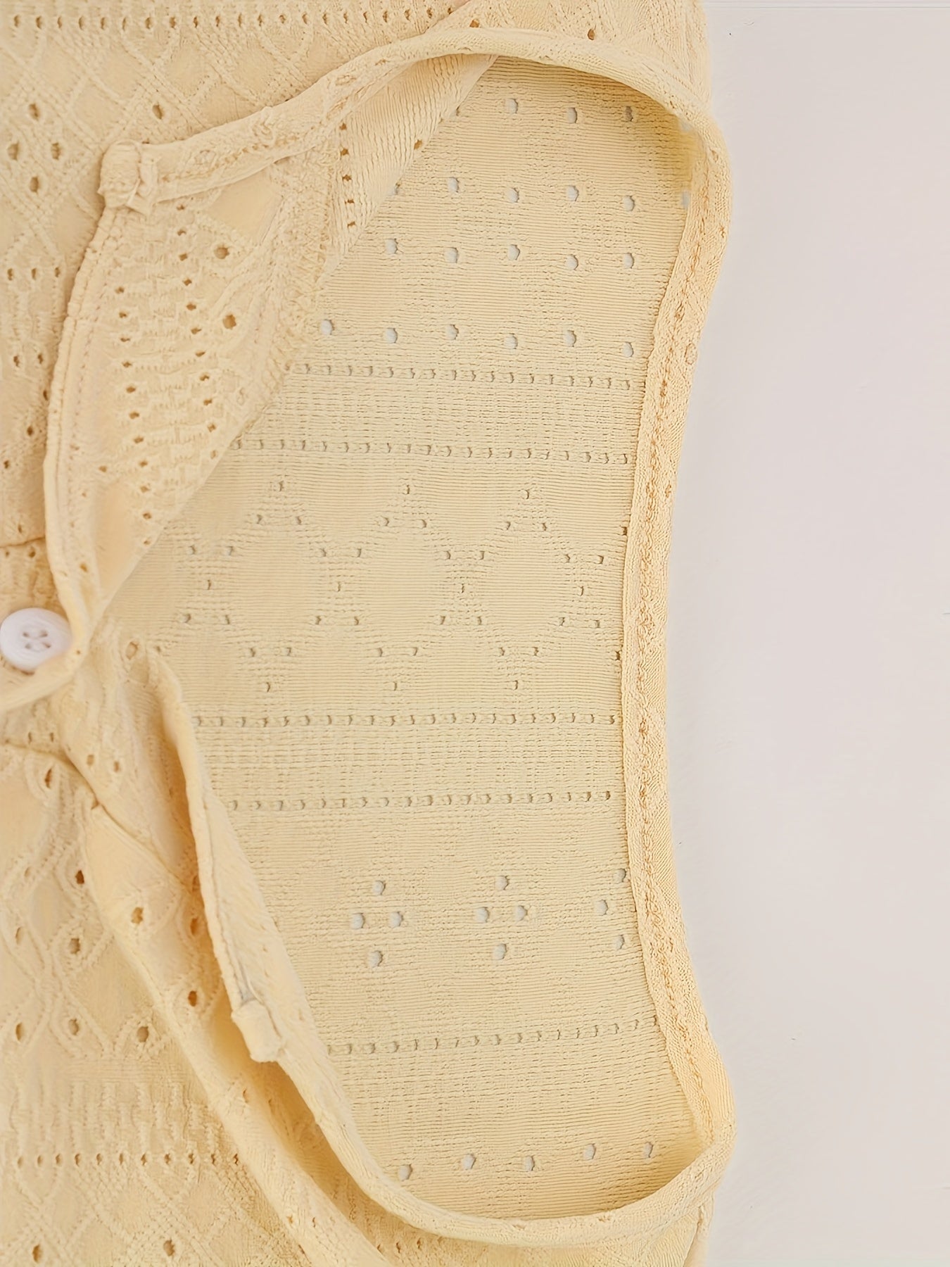 Sale Eyelet Embroidered Button Front T-shirt, Casual V Neck Short Sleeve Top