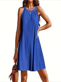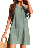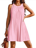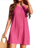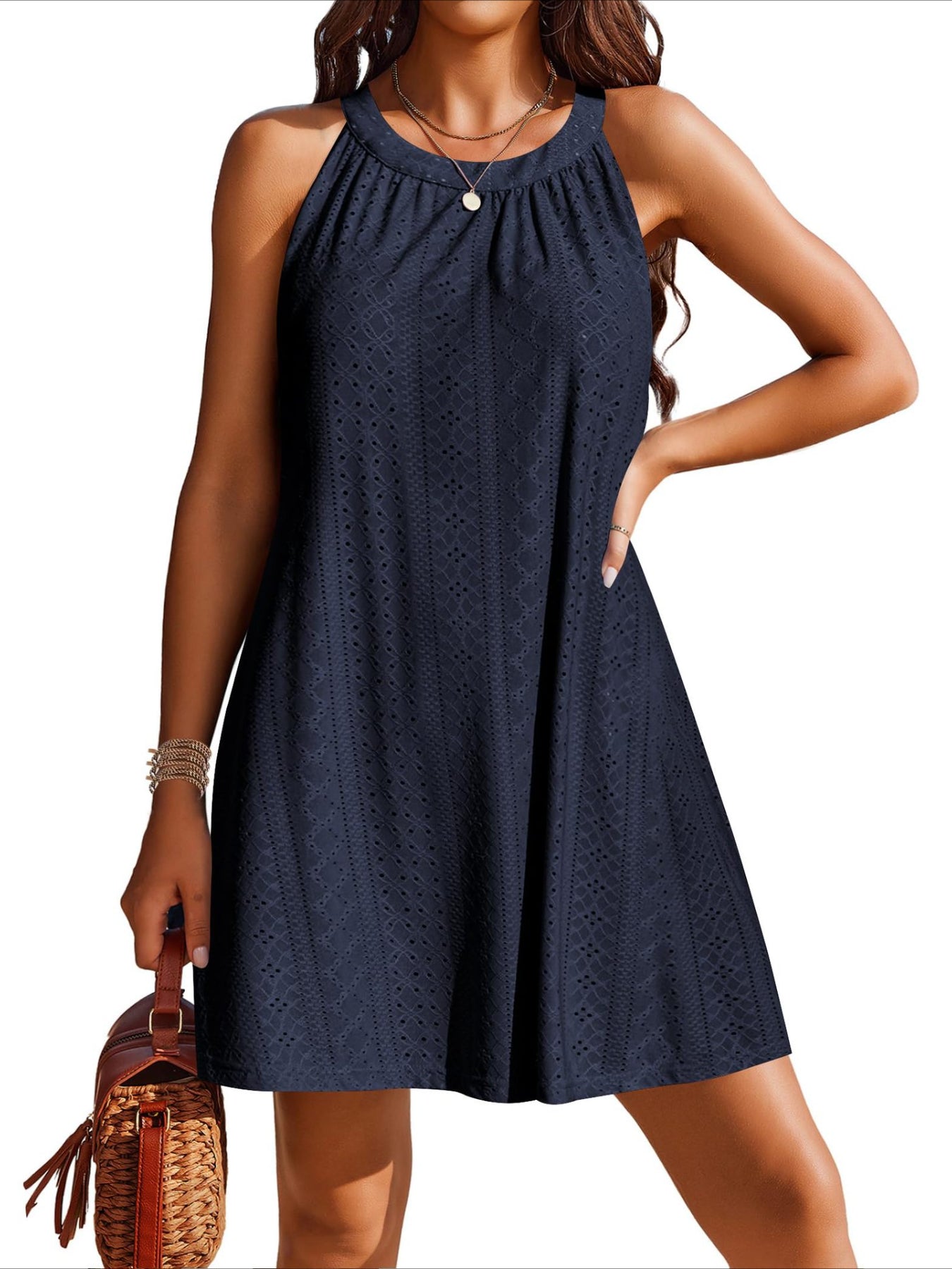 Eyelet Embroidered Crew Neck Dress, Casual Sleeveless Dress