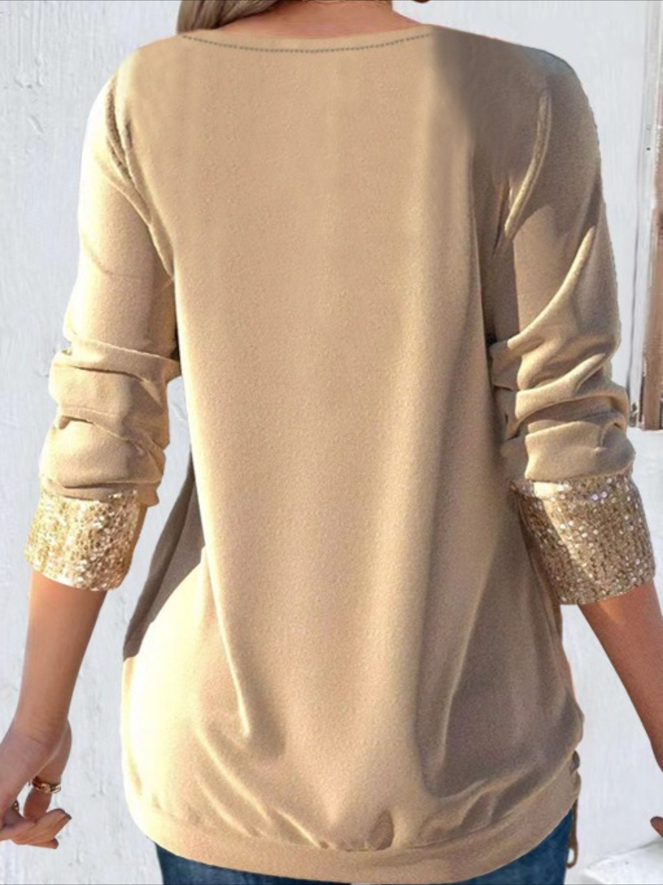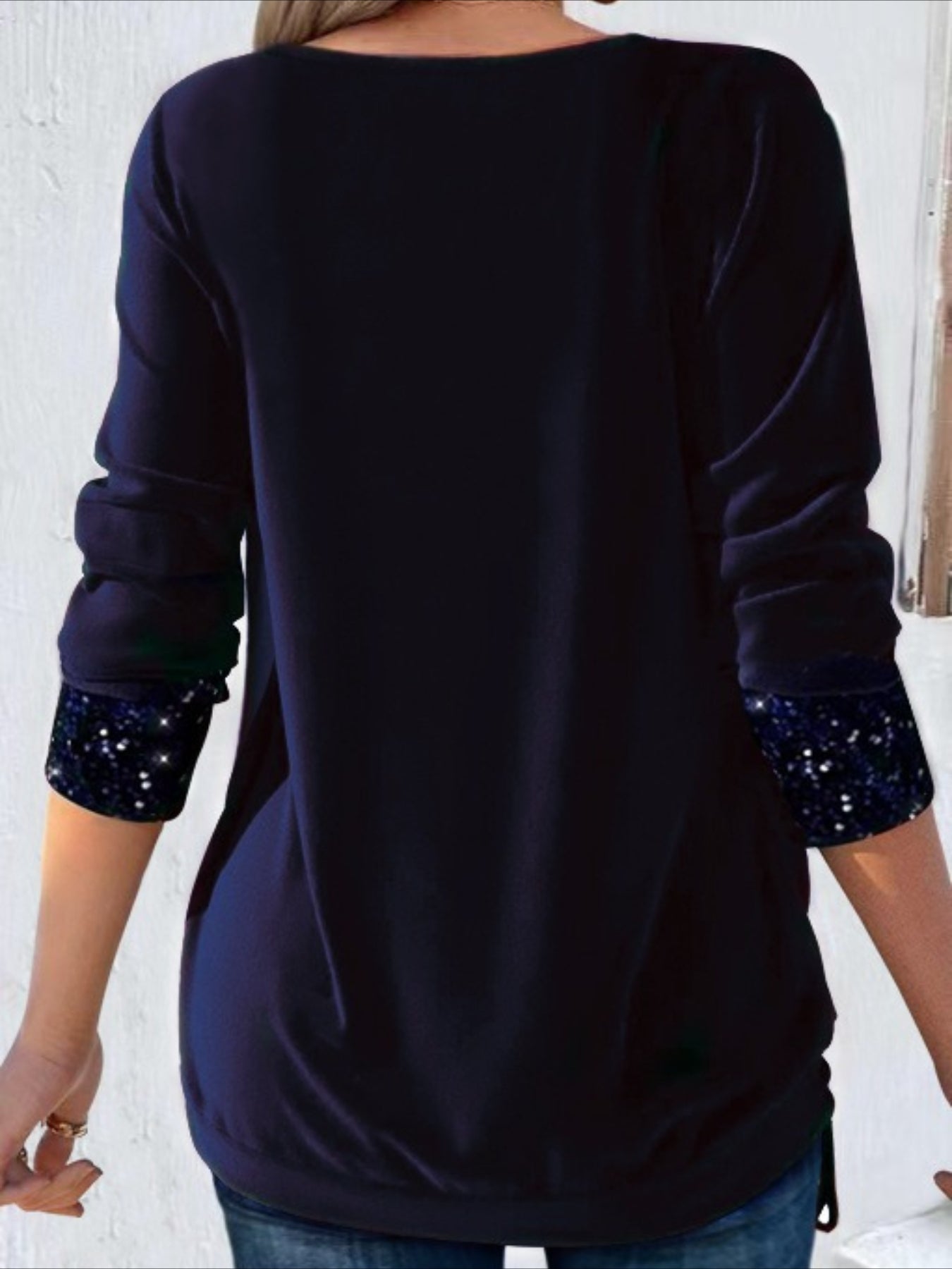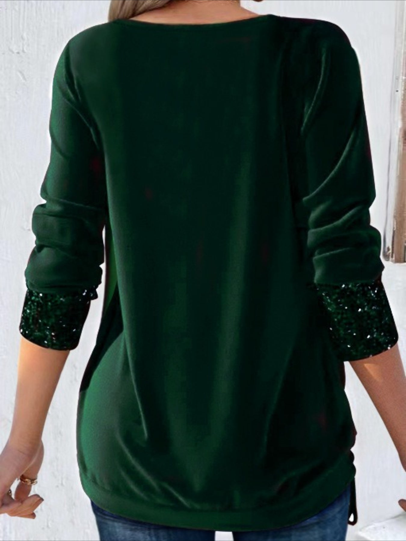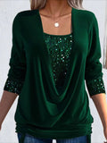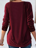 Solid Color Swinging Neck Long Sleeve Sexy Velvet T-shirt