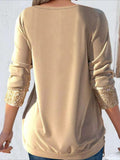 Sale Lace Trim Pleated Solid Color Long Sleeve Button-Up T-Shirt