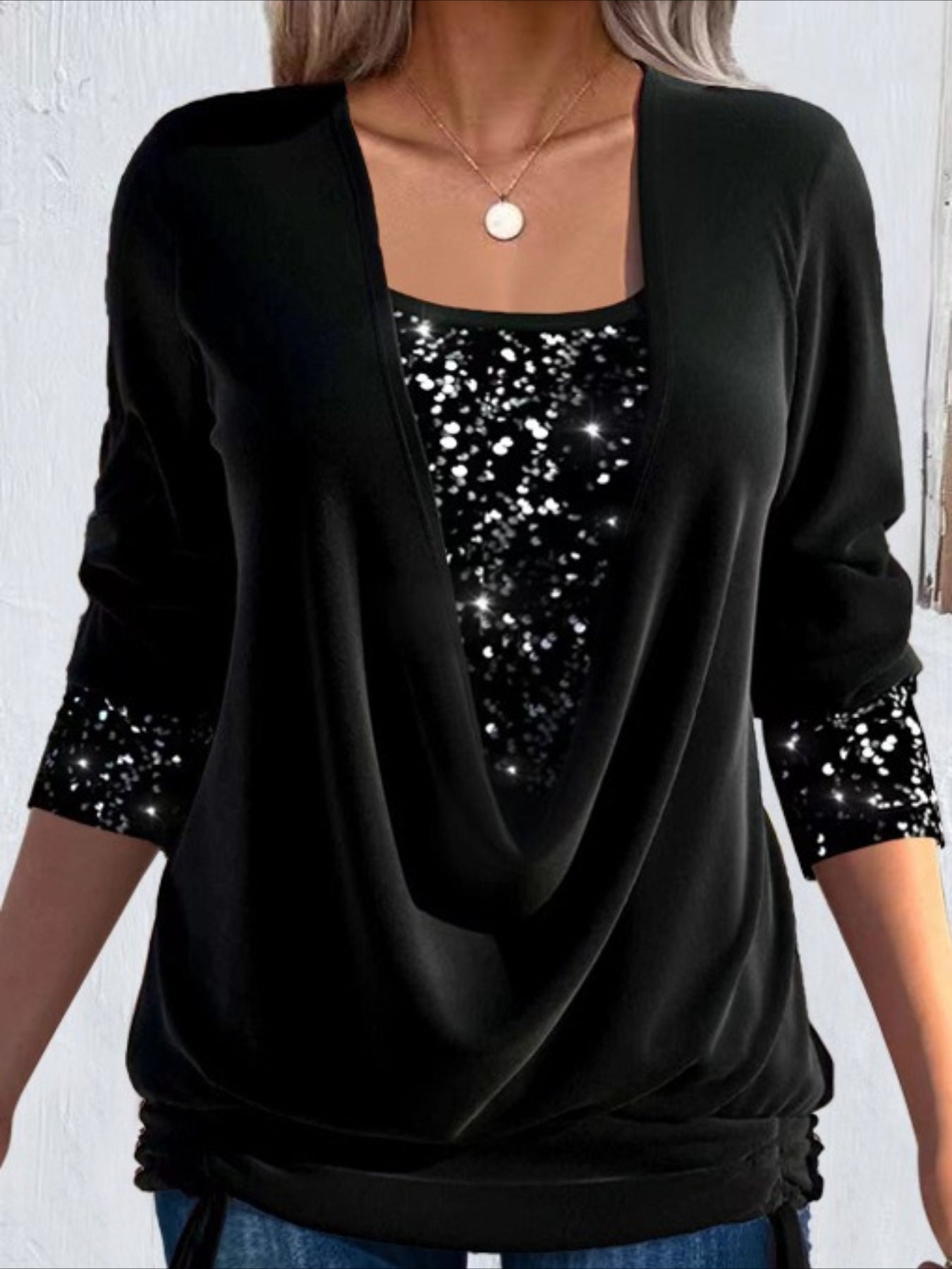 Cowl Neck Long Sleeve Plain Regular Regular Fit Shirt