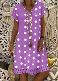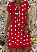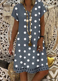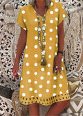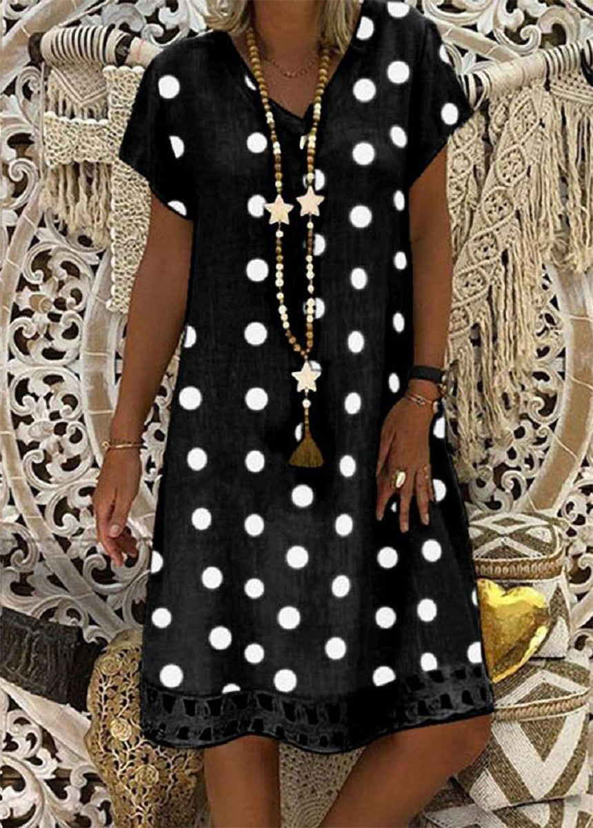 Fashionable Polka Dot Short Sleeve V-neck Print Dress