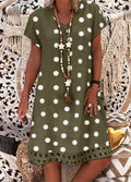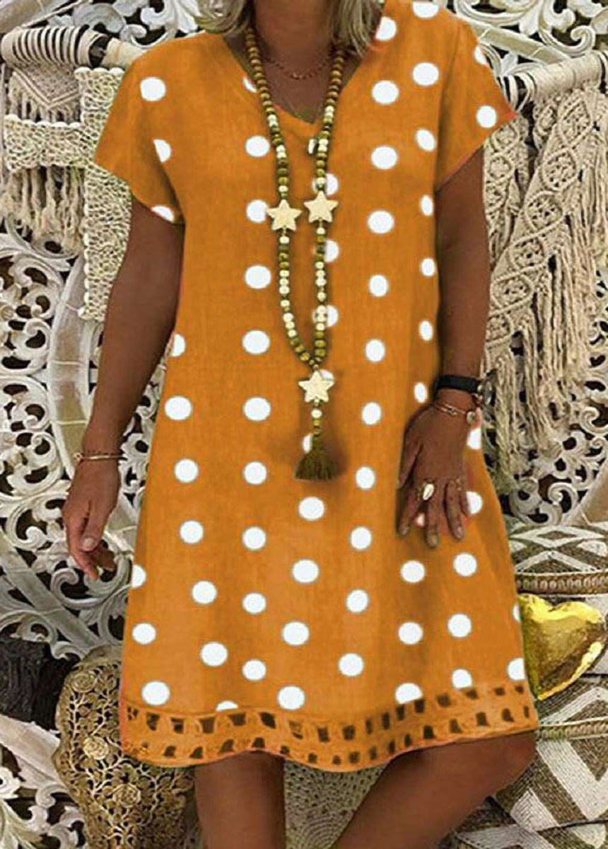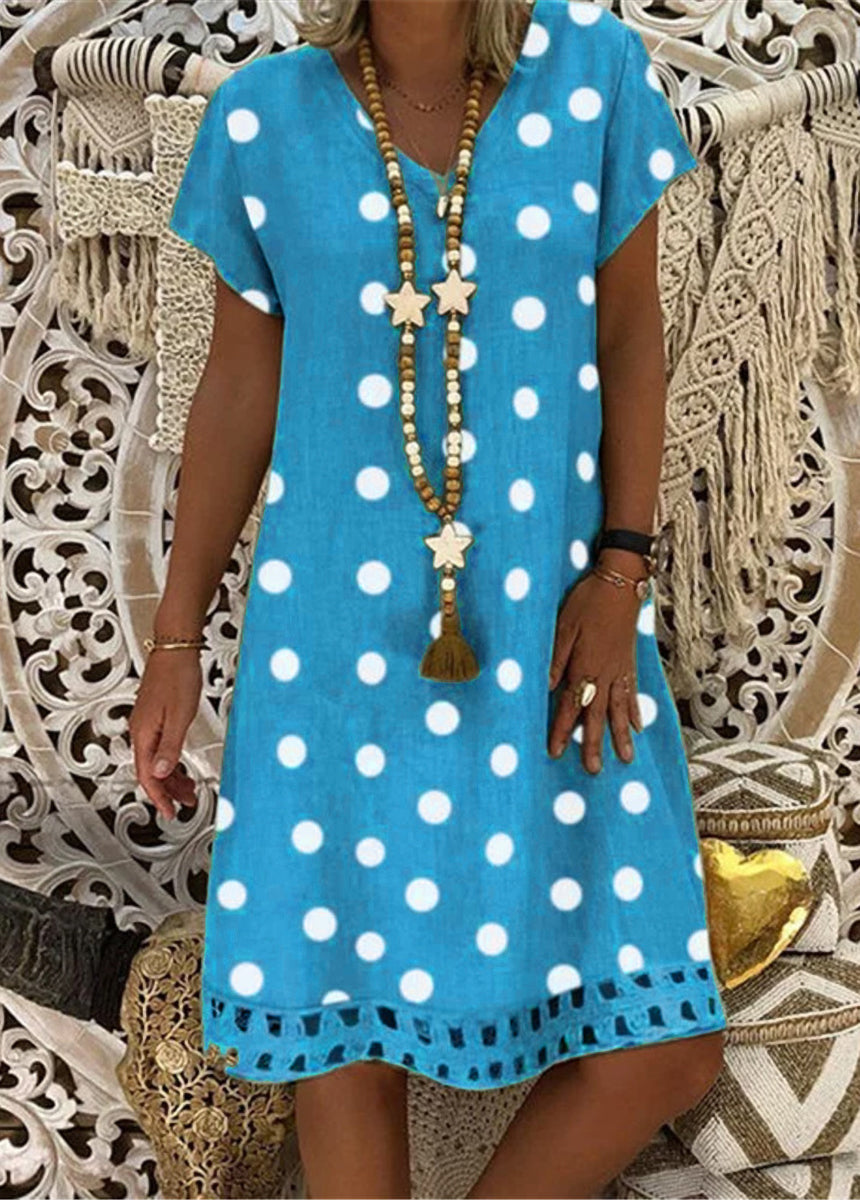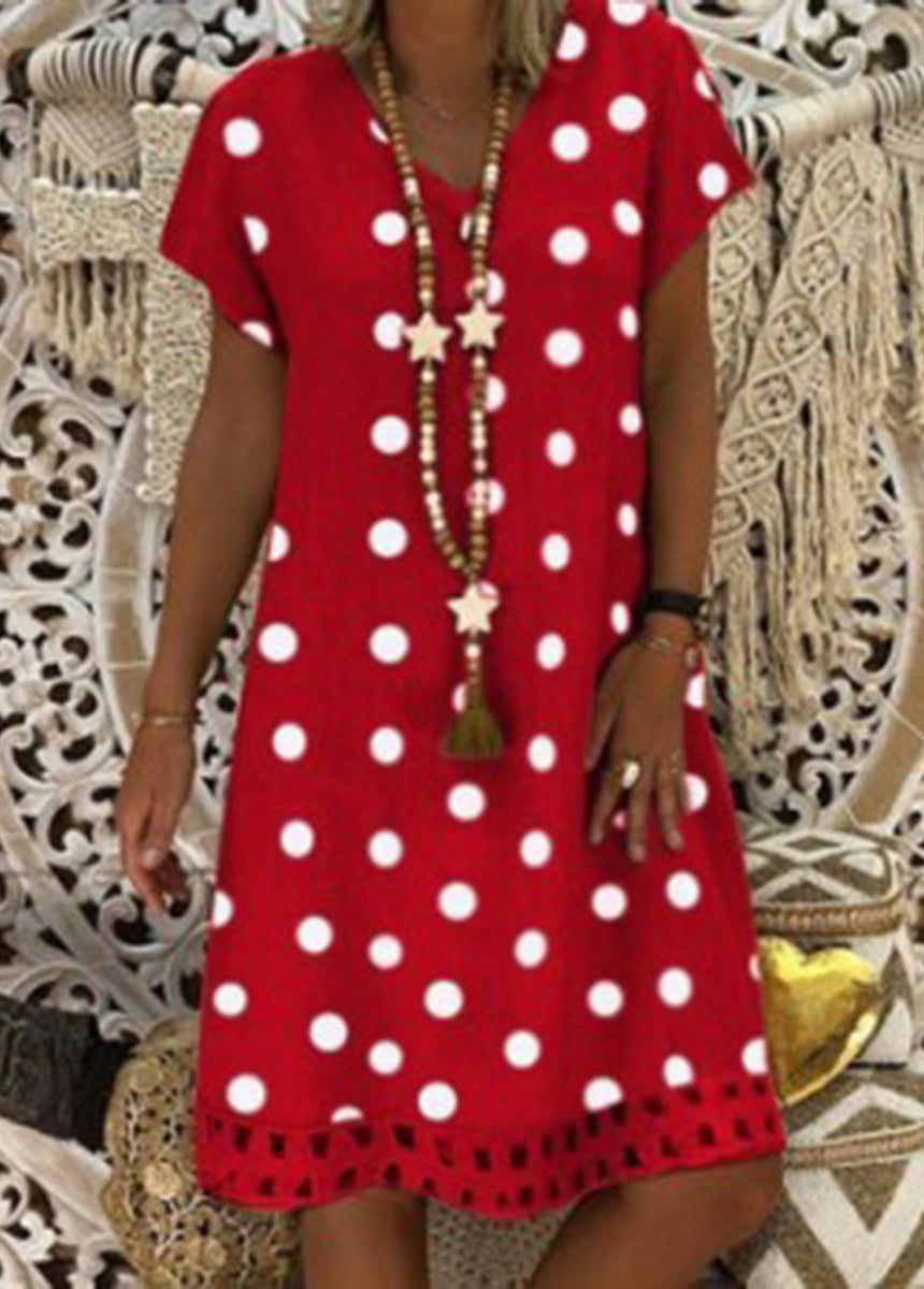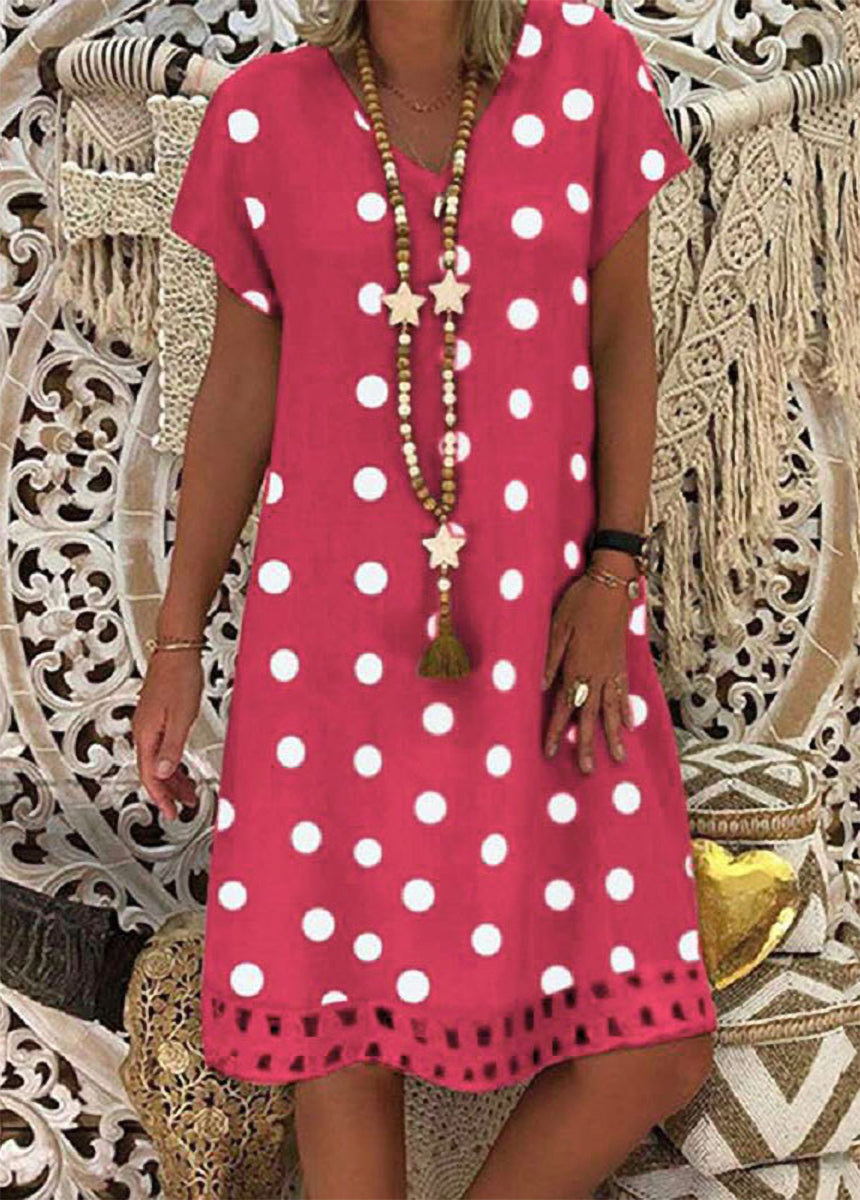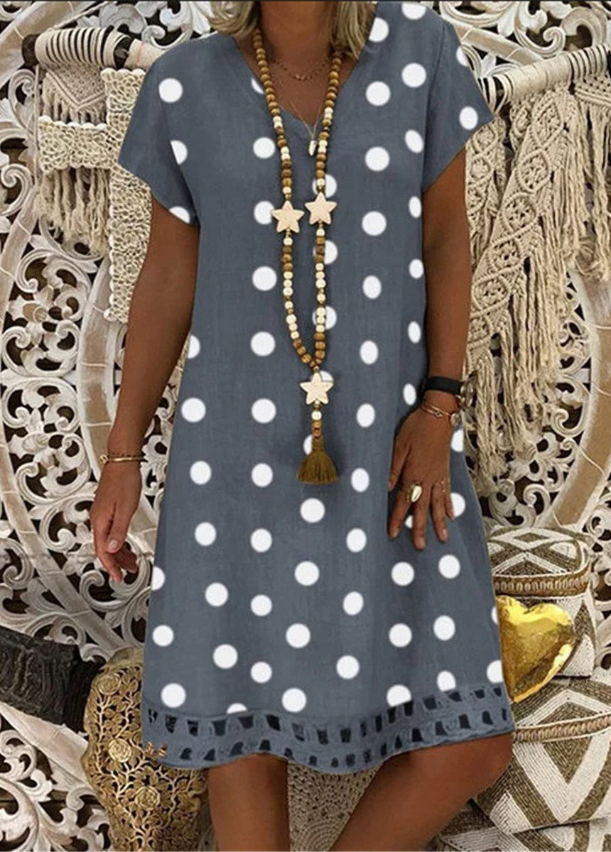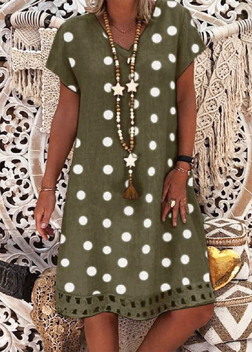 Sale Fashionable Polka Dot Short Sleeve V-neck Print Dress