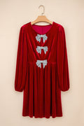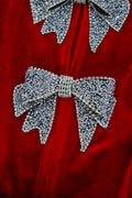 Fiery Red Bowknot Decor High Waist Velvet Mini Dress