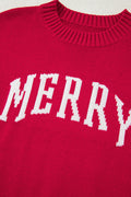 Fiery Red MERRY Letter Pattern Christmas Holiday Baggy Sweater