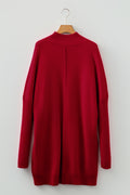 Fiery Red Ribbed High Neck Front Pockets Center Seam Shift Sweater Dress