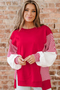 Fiery Red Striped Patchwork Sleeve Colorblock Sweatshirt