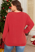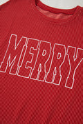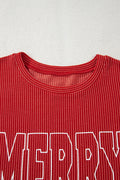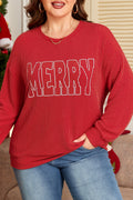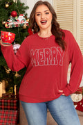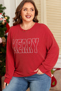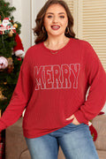 Fiery Red Twist Ribbed MERRY Letter Graphic Plus Size Pullover