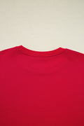 Fiery Red Varsity Striped Detail Crewneck Pullover Elastic Sweatpants 2pcs Outfit