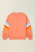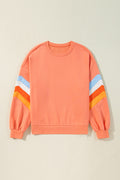 Sale Flamingo Rainbow Striped Sleeve Crew Neck Loose Sweatshirt