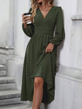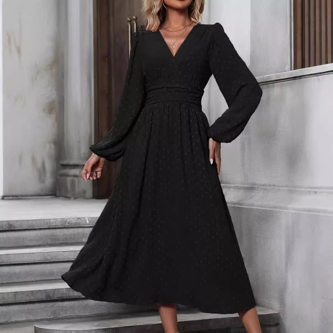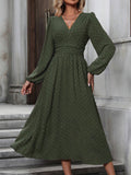 Sale Solid Color Long Sleeve Dress, Elegant V Neck Flared Dress