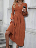 Add a touch of sweetness to your daily wardrobe with this V-neck, long dress featuring...