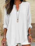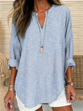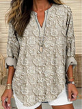 Sale V Neck Long Sleeve Geometric Regular Micro-Elasticity Regular Fit Blouse