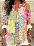 Floral Basic Casual Long Sleeve V Neck Regular Tops