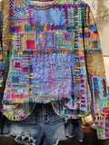 Plaid Vintage Stylish Long Sleeve Crew Neck Regular Tops