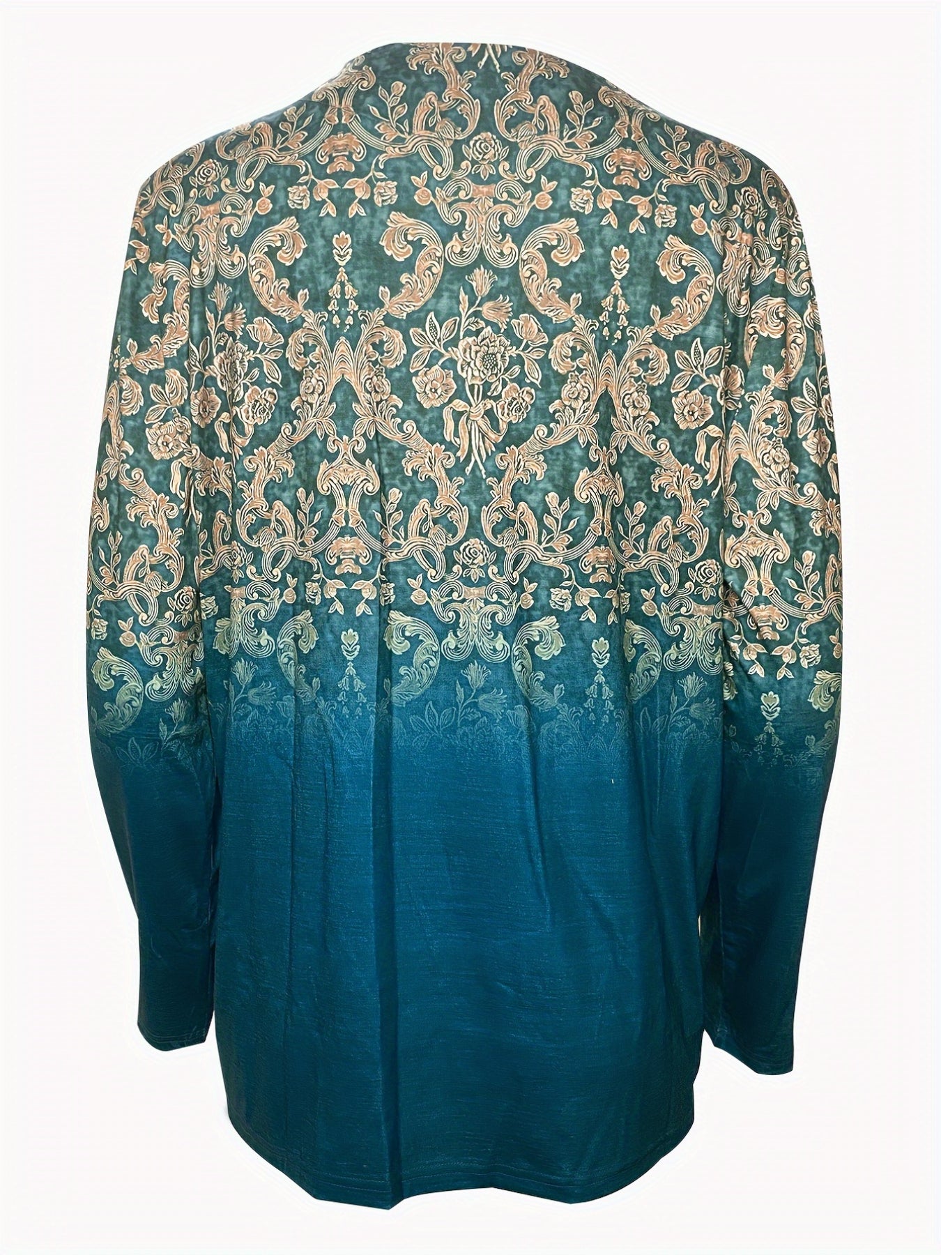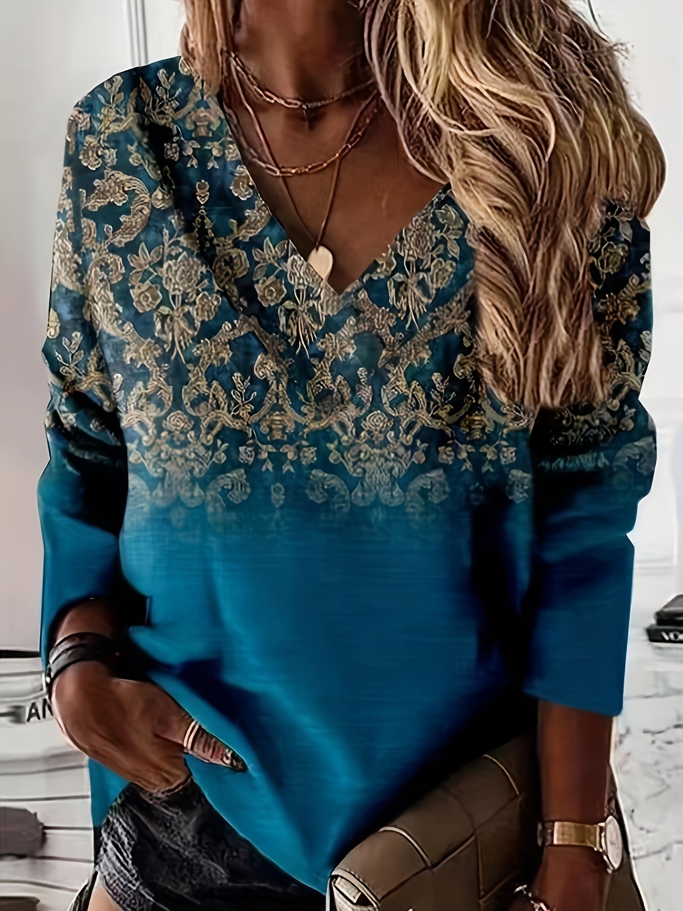 Floral Print Pullover Sweatshirt, Casual Long Sleeve V-neck Sweatshirt