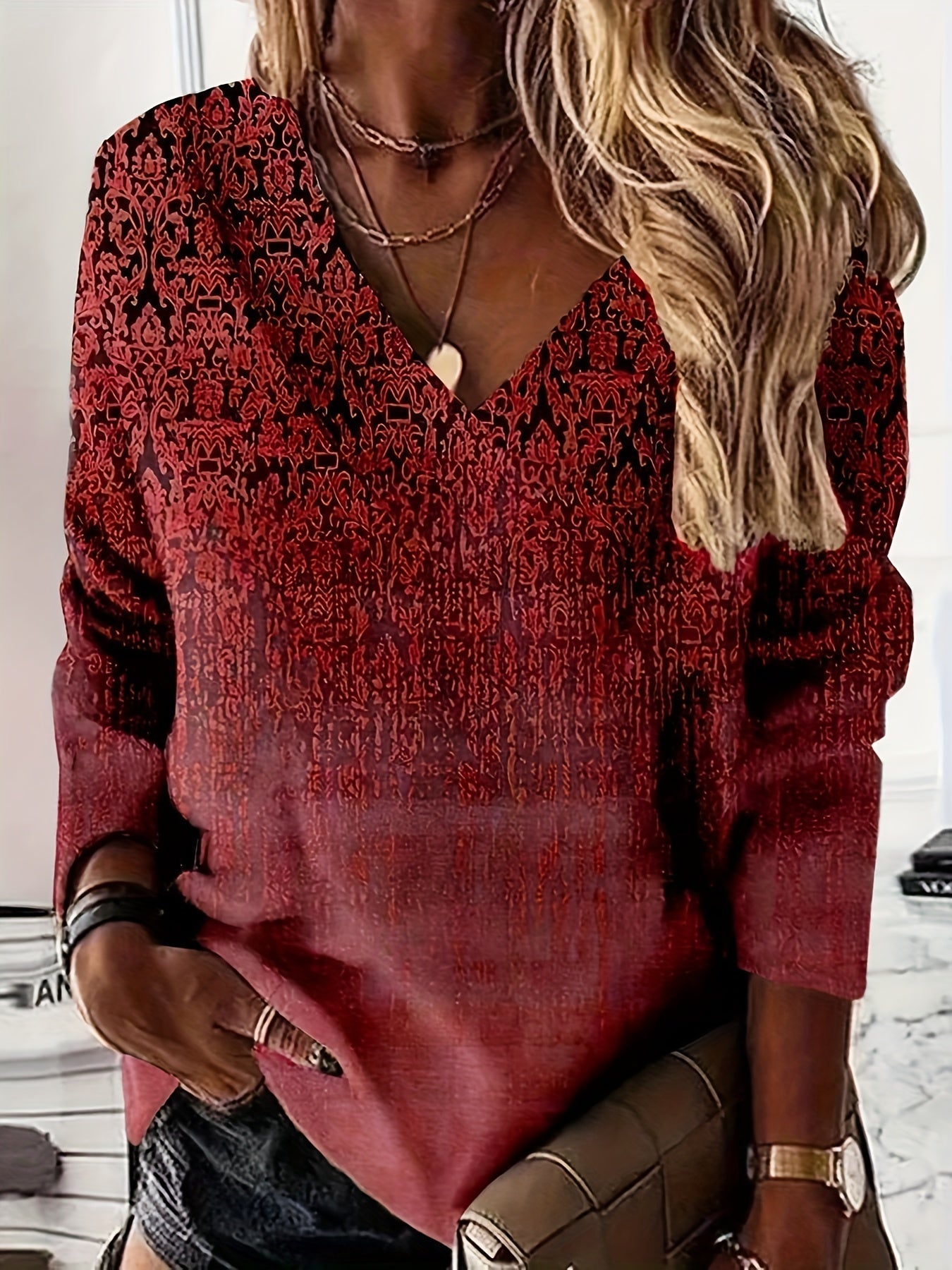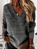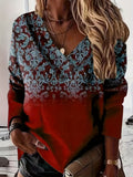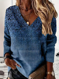 Sale V Neck Long Sleeve Geometric Regular Micro-Elasticity Regular Fit Blouse