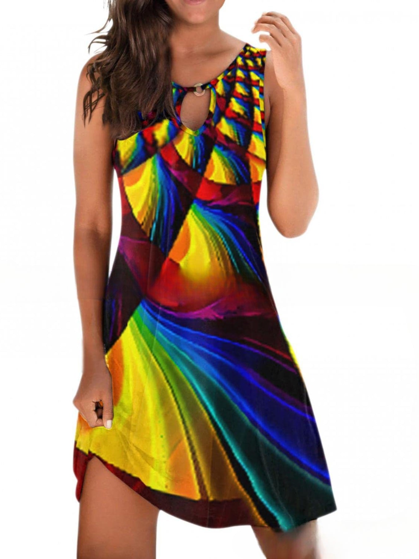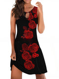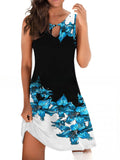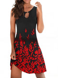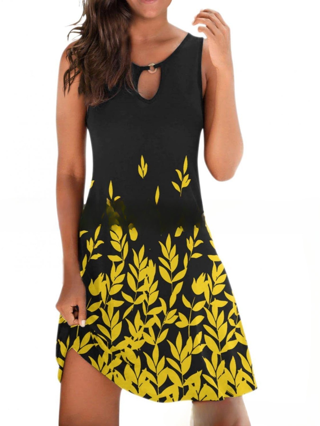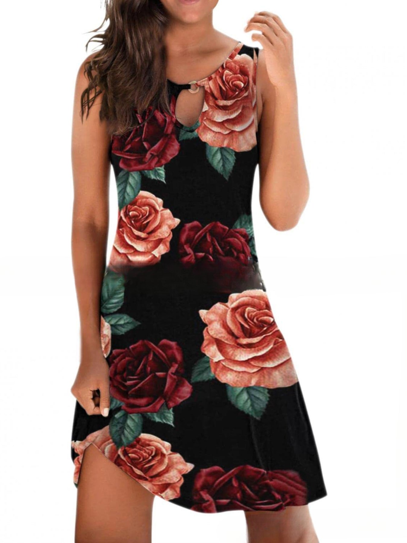 Sale Floral Print Ring Decor Tank Dress, Casual Sleeveless Dress