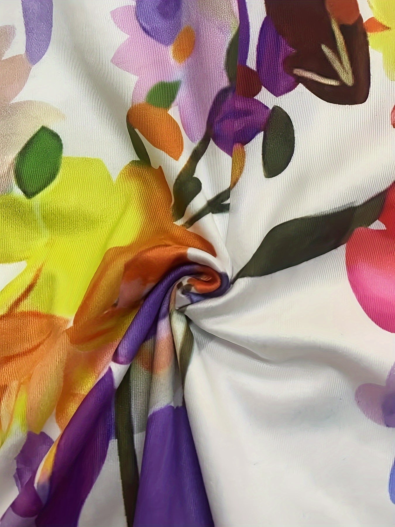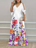 Sale Floral Print V Neck Dress, Casual Split Hem A-line Dress