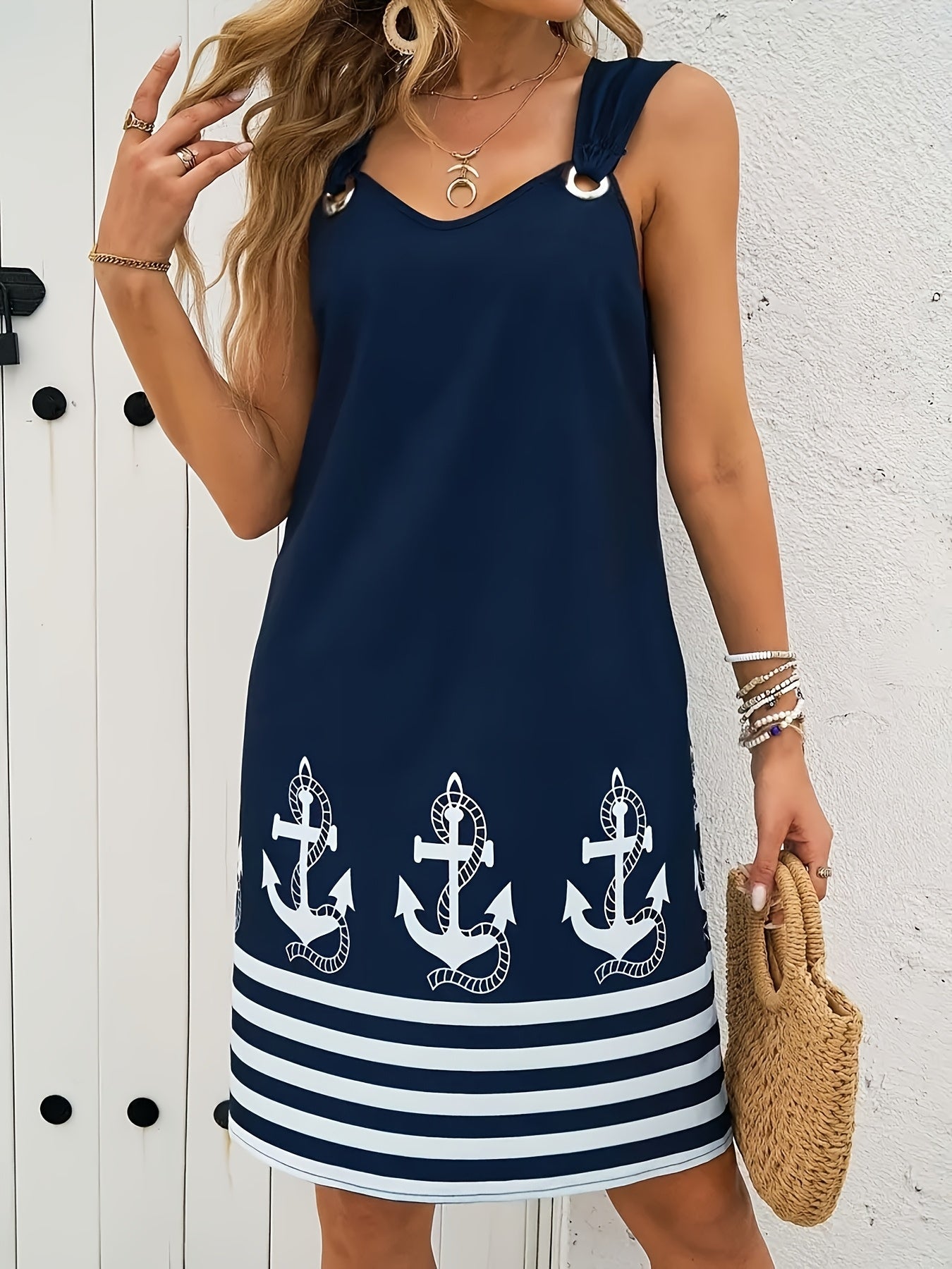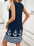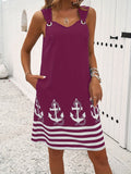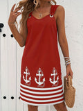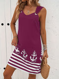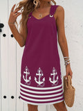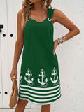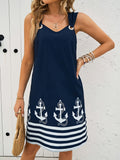 Floral & Striped Print Sleeveless V-Neck Dress