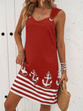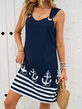 Sale Summer Women's Fashion Butterfly Print Sleeveless Vest Dress Round Neck Casual Dress