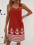Sale Floral & Striped Print Sleeveless V-Neck Dress