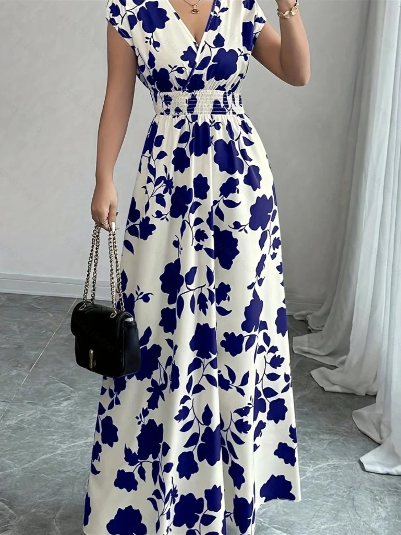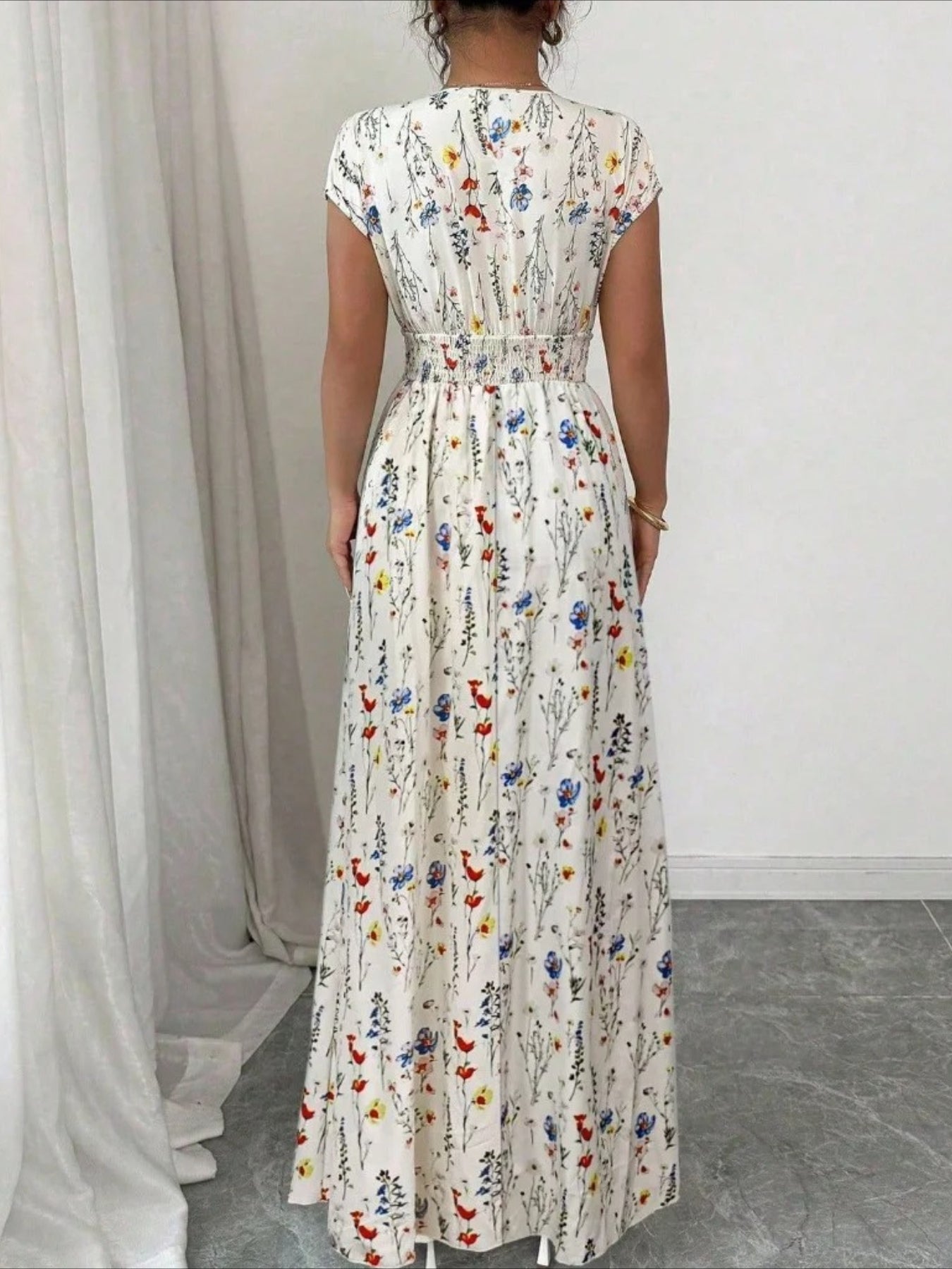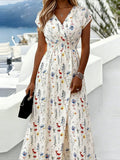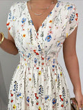 Floral Summer V Neck Short Sleeve A-Line Dress