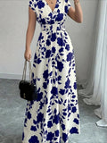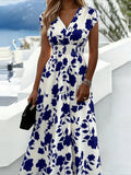 Short Sleeve Summer Floral Printing Crew Neck Daily Going Out Casual Maxi H-Line Shift Maxi Dress