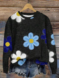 Text Printing Crew Neck Floral Long Sleeve Sweater Hoodie