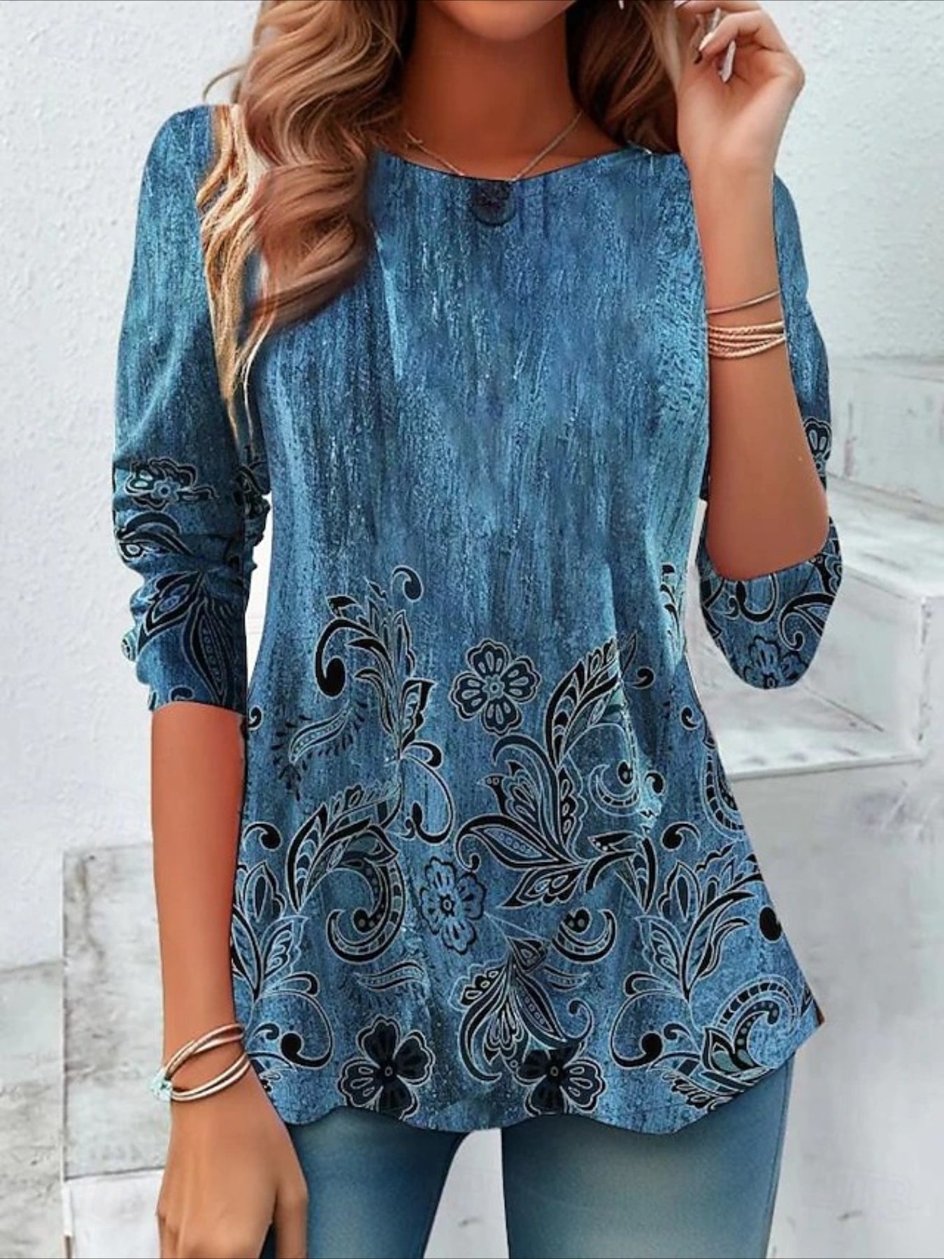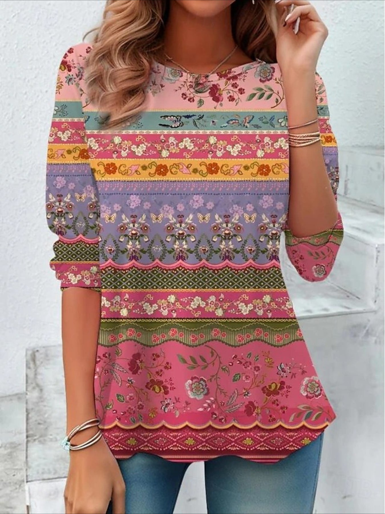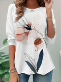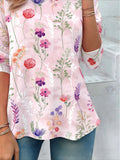 Flower Printed Casual Crew Neck Long Sleeve T-shirt