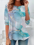 Sale Floral Three Quarter Sleeve Tee T-shirt V Neck Printing Casual Spring/Fall Graphic Tee Top