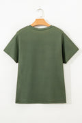Green Stripe Short Puff Sleeve Contrast Trim Round Neck Tee