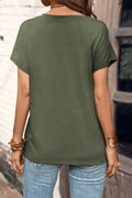 Dusty Pink Solid Color Ribbed Ruffled Short Sleeve T Shirt