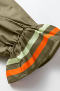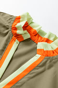 Four Leaf Clover Striped Trim Ruffle Split Neck Long Sleeve Blouse