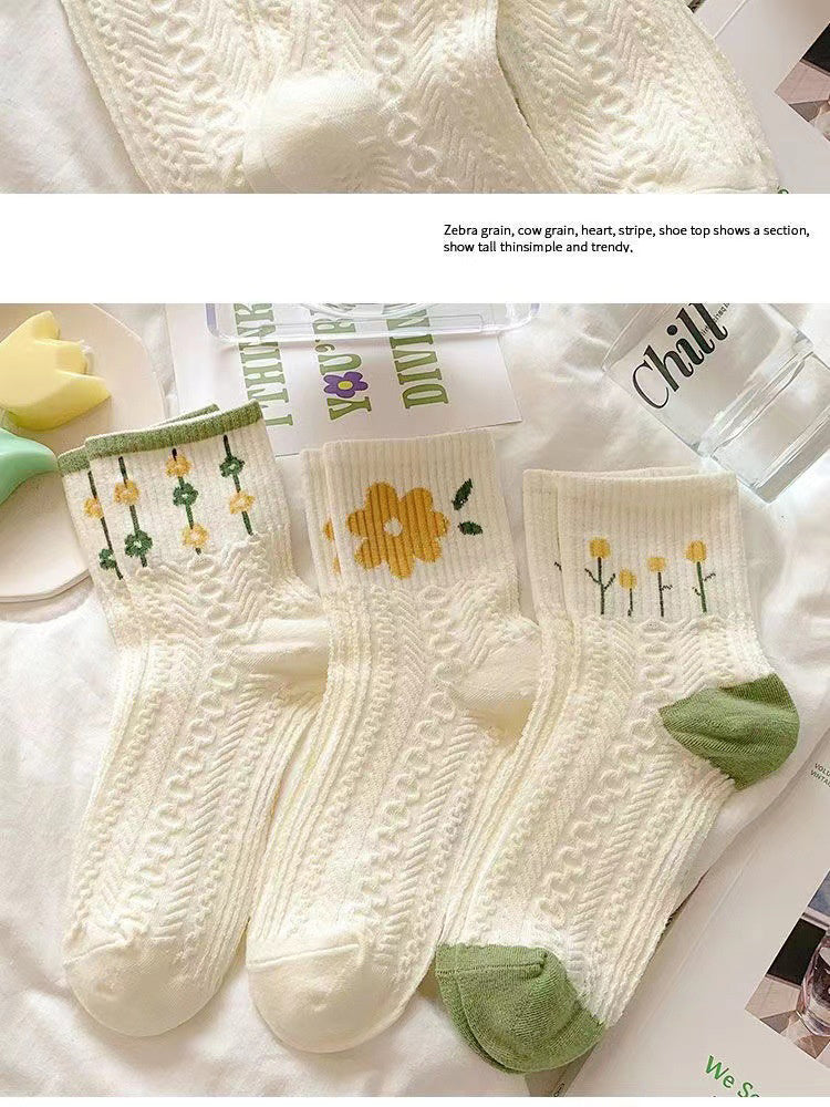 Free Gift Retro Floral Socks , Texture Solid Socks