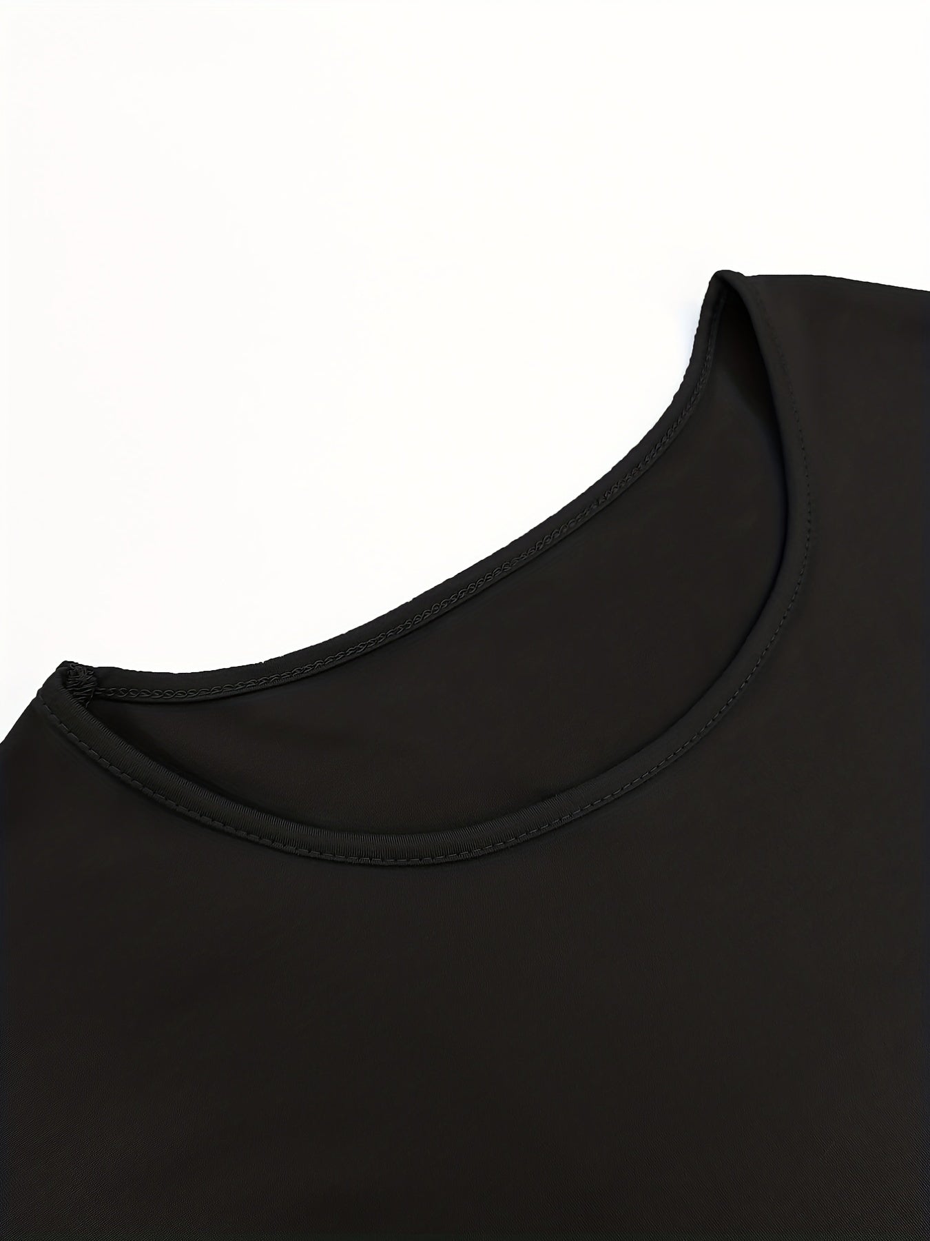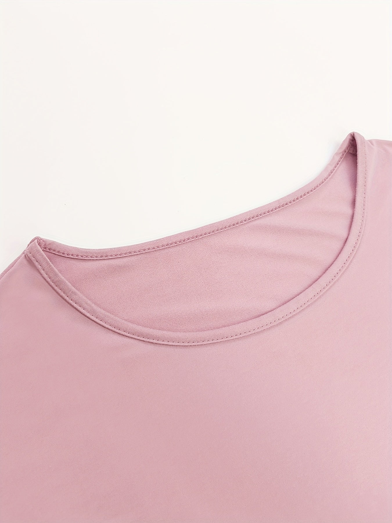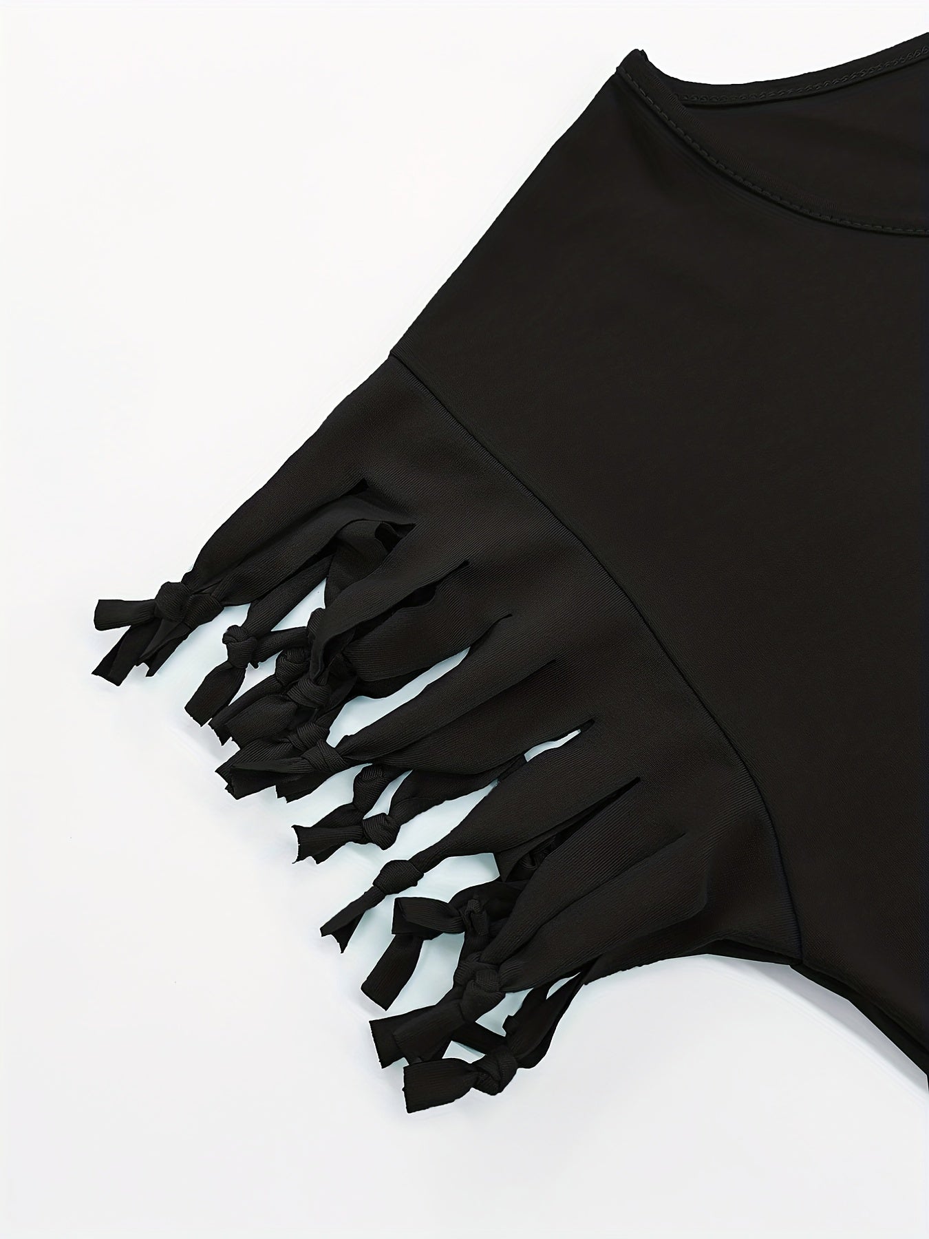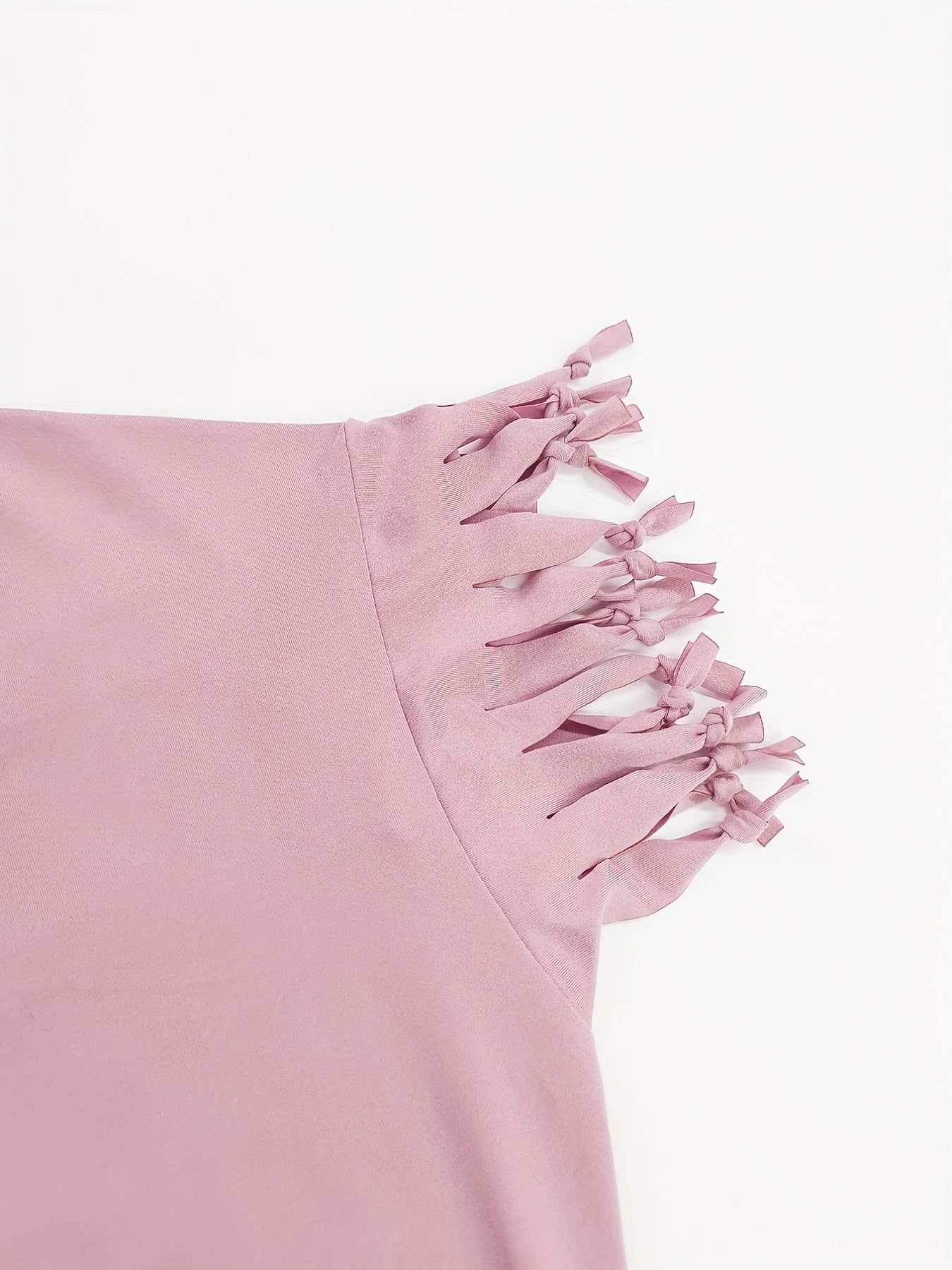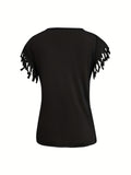 Fringe Hem Solid T-Shirt, Crew Neck Short Sleeve T-Shirt