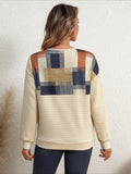 Casual Shawl Collar Color Block Sweatshirt