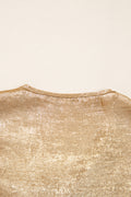 - The solid gold color pairs easily with various bottoms for versatile styling.