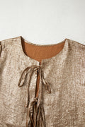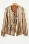 Sale Gold Metallic Tied Front Babydoll Blouse