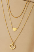 - This Layered Heart Necklace Set is a must-have accessory.The set features 3 high-quality gold-plated alloy necklaces.They are connected at the back with a lobster claw clasp.This stylish set is perfect as a gift for the Valentines season.