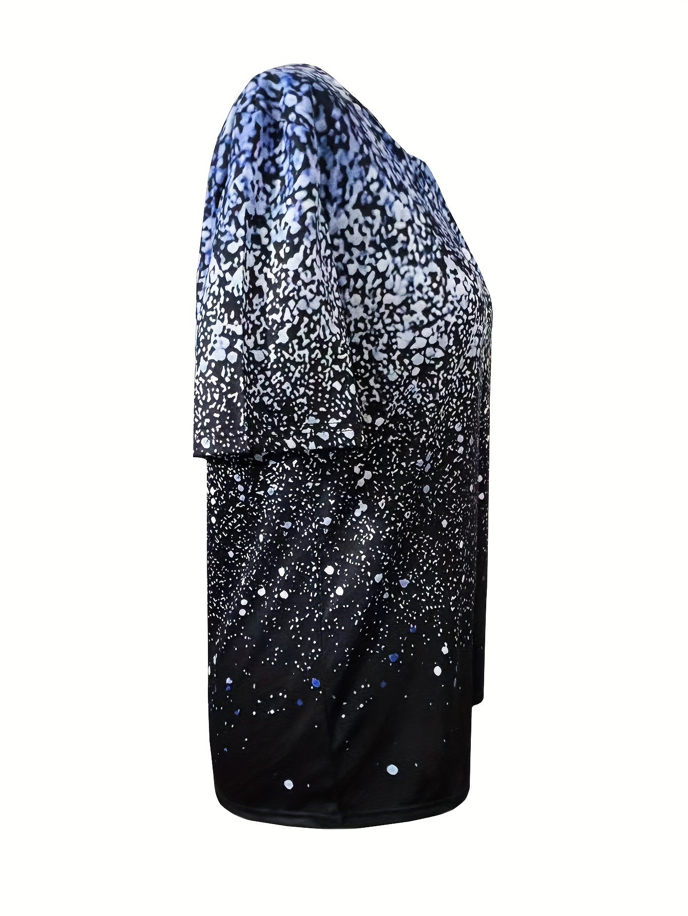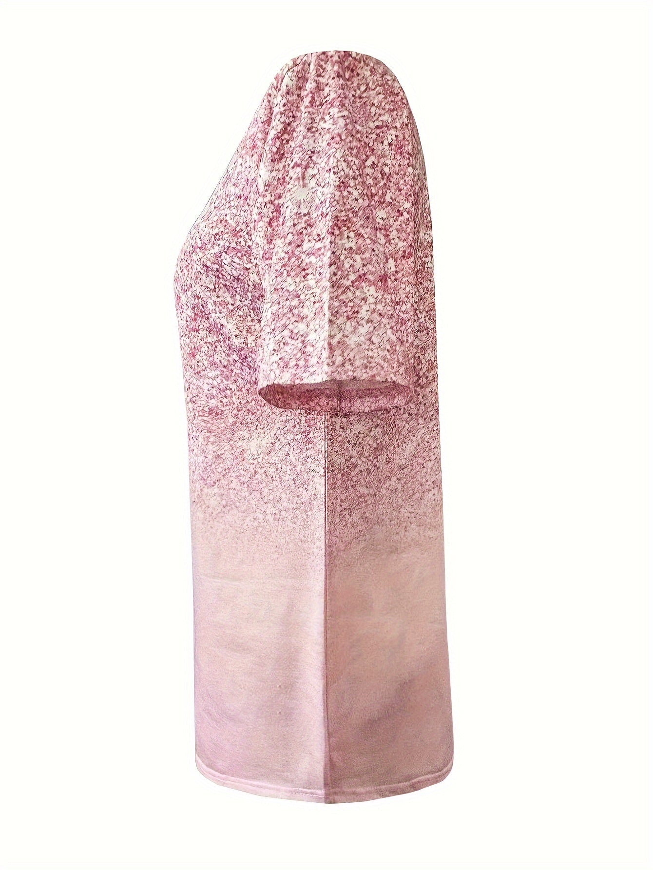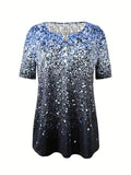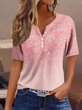 Graphic Print Notched Neck T-Shirt, Casual Short Sleeve Button Front T-Shirt