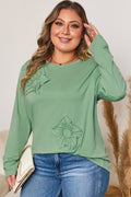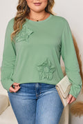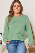 Grass Green Flower Applique Mineral Wash Plus Size Top