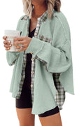 Grass Green Plaid Patchwork Waffle Thermal Knit Shacket