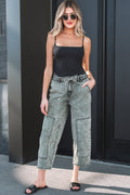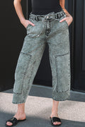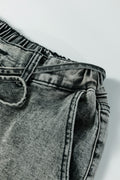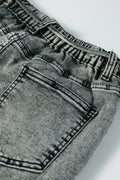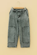 Gray Acid Wash Barrel Fit Denim Pants with Waist String