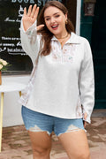 Gray Camo Leaves Patchwork Zipped Collar Pullover Plus Size Sweatshirt