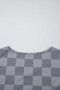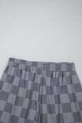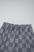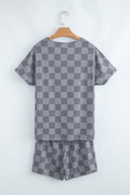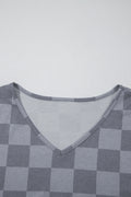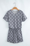 Sale Gray Checkered V Neck Tee Drawstring Shorts Lounge Set